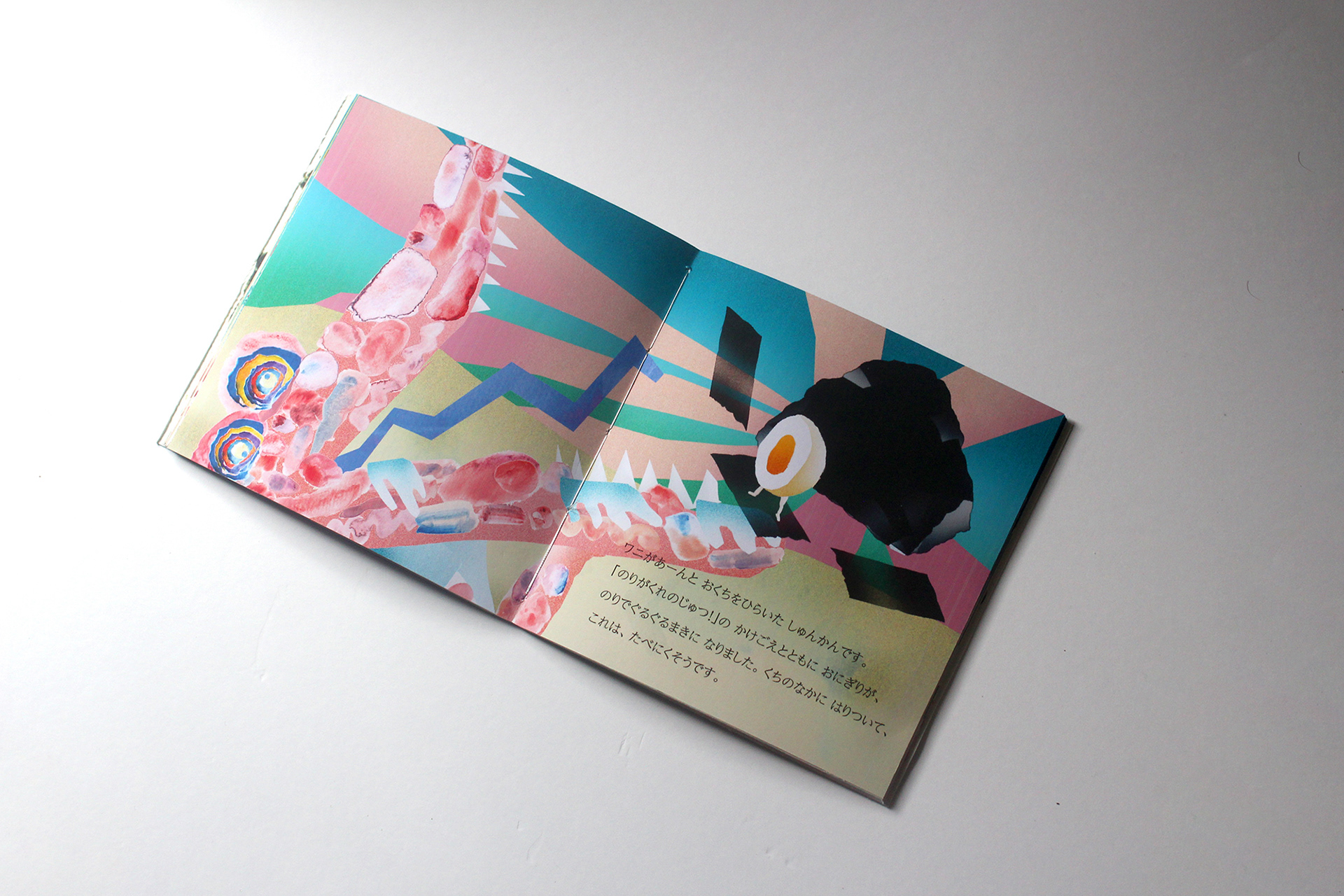 あるところに、おにぎり村がありました。そこにお腹をすかせたワニがやってきて…