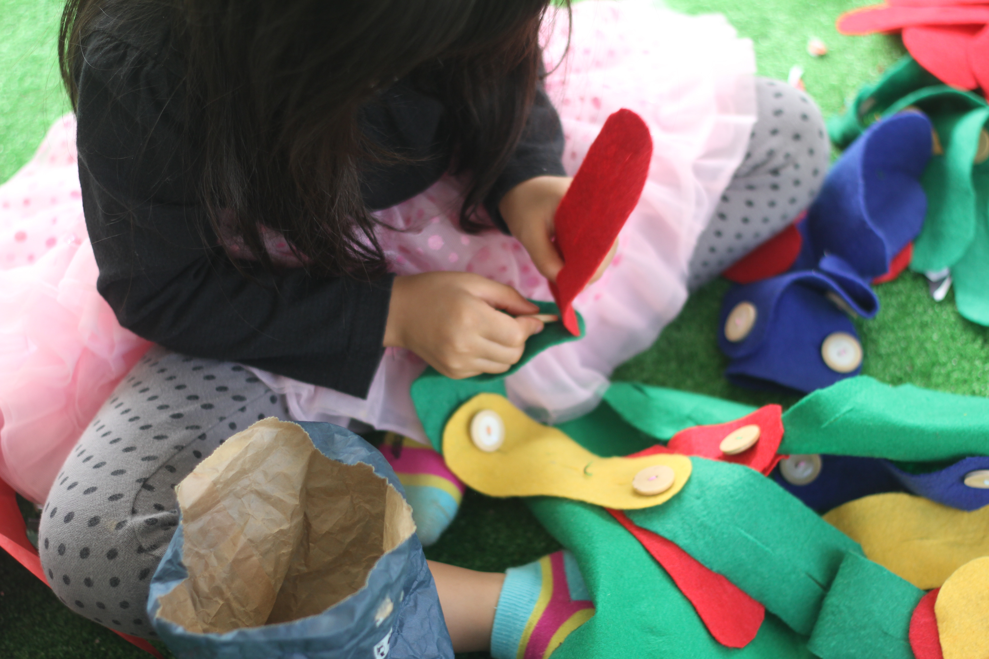 3歳〜ボタンでくっつけるフェルトのおもちゃを設計、制作し、