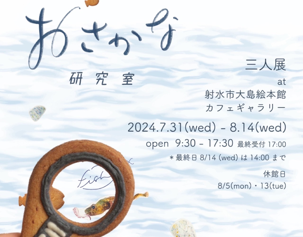【終了】2024.7/31(水)〜8/14 「おさかな研究室」 三人展@射水市大島絵本館 カフェギャラリー